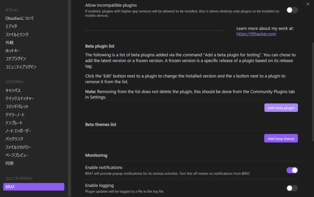 6. オプションを押下 or 設定ボタンから「Add beta plugin」ボタンを押下する
