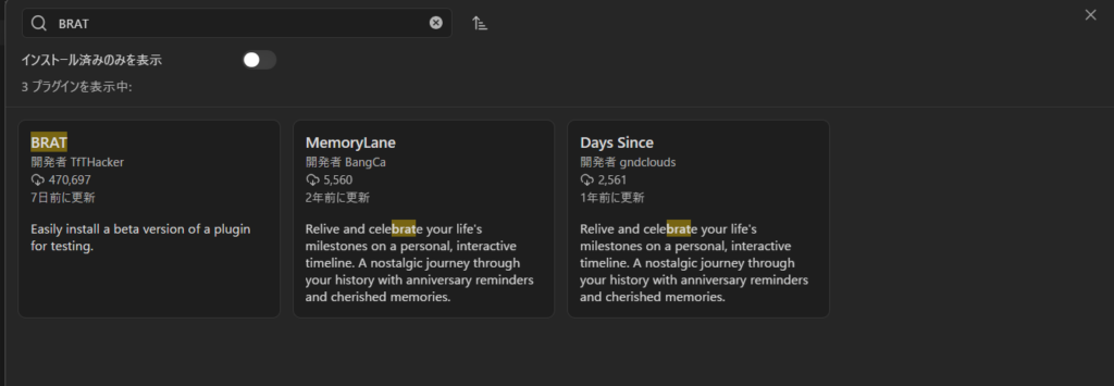5. 有効化すると閲覧ボタンが出てくるので、閲覧ボタン押下後にBRATというプラグインを検索してインストールして有効化する